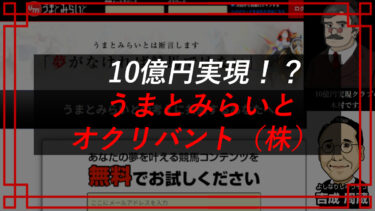 今回は【オクリバント株式会社】が提供する【うまとみらいと10億円実現クラブ】について注意喚起させてもらう。 結論 悪質競馬予想サイトの可能性大 特に、今後購入を検討している、またはサービスを利用・購入したという方は是非参考にしてほしい。[…]