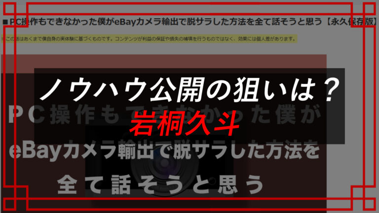 今回は【岩桐久斗】が提供する【eBayカメラ輸出コンサル】について注意喚起させてもらう。