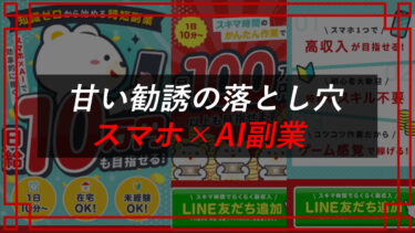 今回は、【スマホ×AIで効率的に稼ぐ時短副業】について注意喚起させてもらう。 結論 稼げない可能性大 特に、今後購入を検討している、またはサービスを利用・購入したという方は是非参考にしてほしい。 [afTag id=770] スマホ[…]