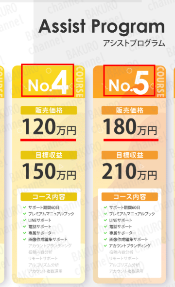 各プランには目標収益が記載されており、高額なプラン程収益が多く魅力的になっている。